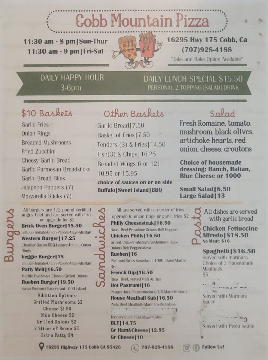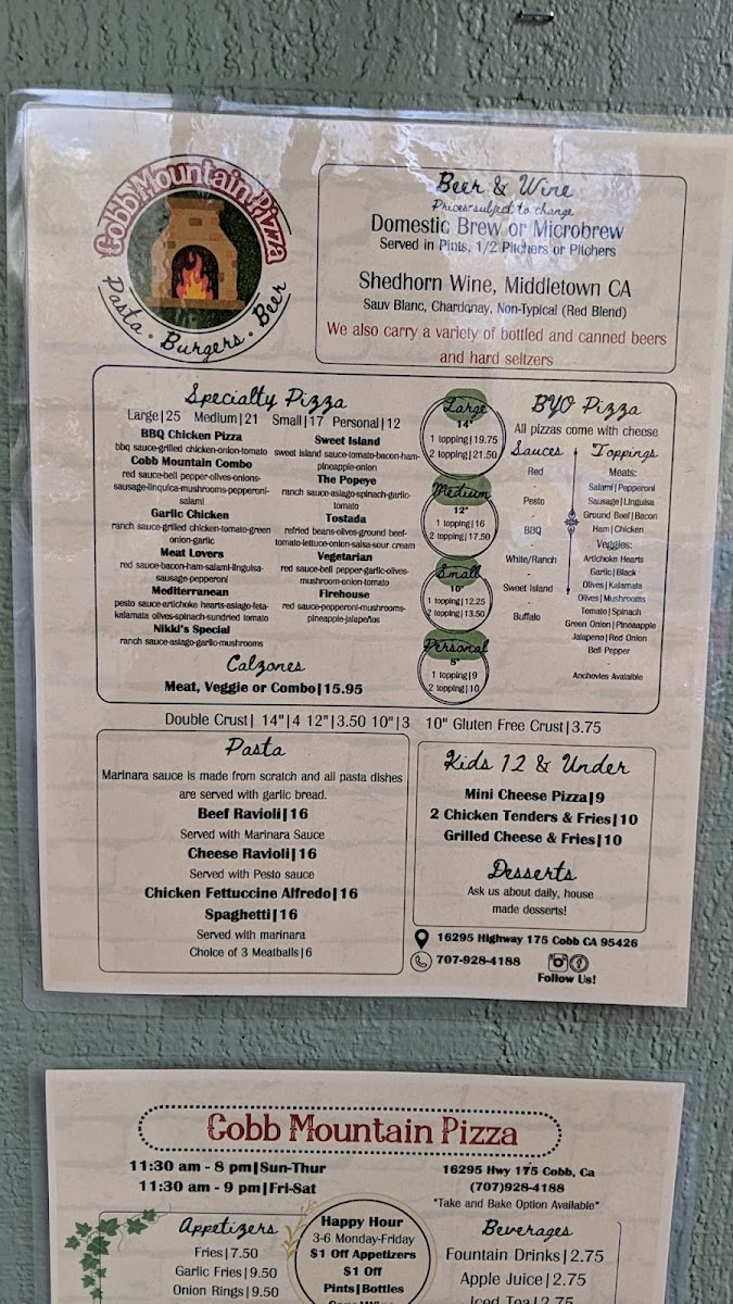 Welcome to Brick Oven Pizza and Pasta, a culinary gem nestled in the heart of Middletown, CA. Specializing in artisanal pizzas and hearty pasta dishes, this charming eatery is perfect for food lovers seeking a satisfying meal. The star of the menu is undoubtedly their pizzas, celebrated for their crispy yet tender crusts and generously loaded toppings. Diners rave about options like the BBQ chicken pizza, complete with a bacon twist, proving that every bite is bursting with flavor.